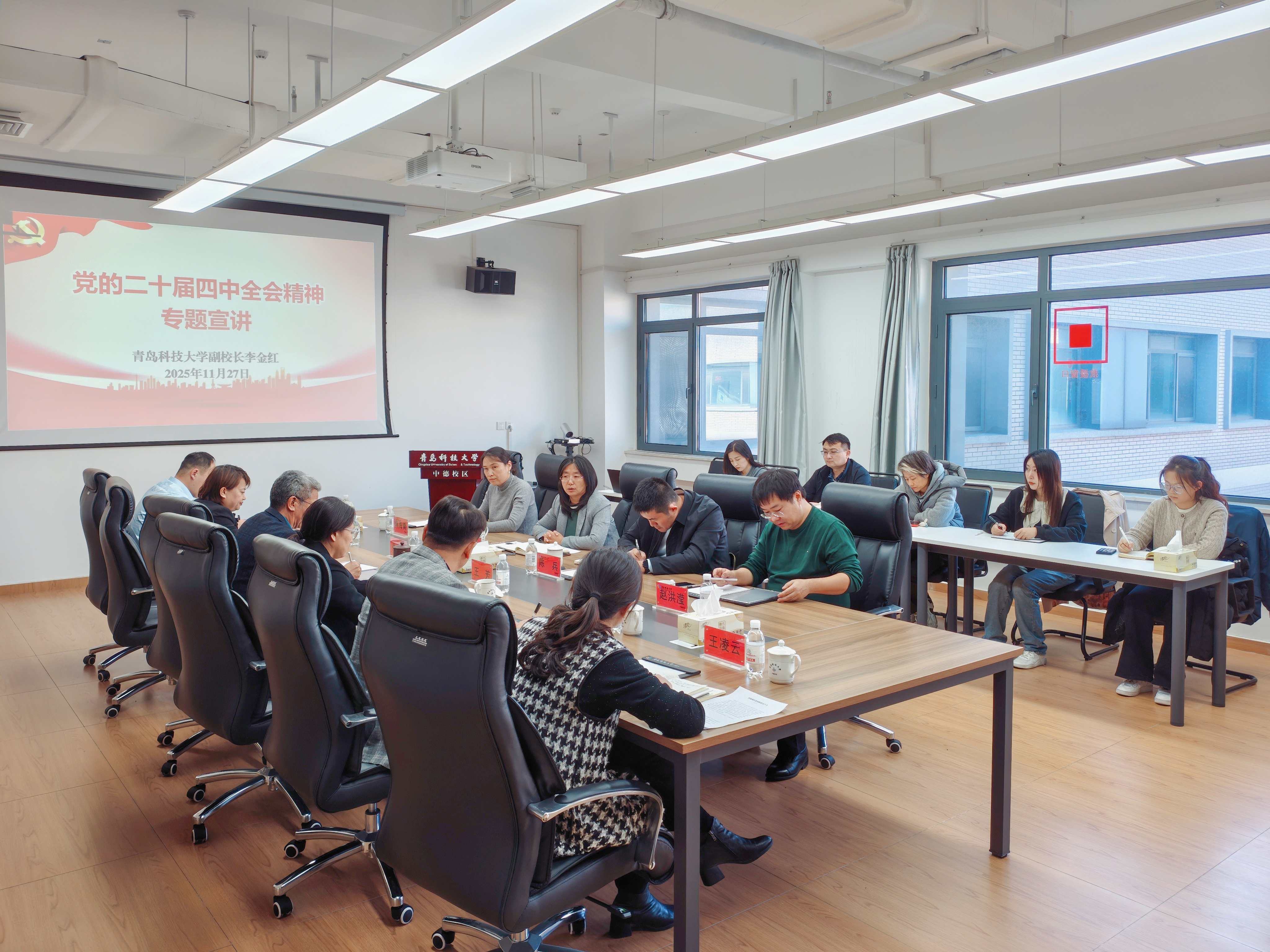11月27日下午,副校长李金红为中德科技学院、中德工程学院师生代表宣讲党的二十届四中全会精神。国际交流合作处处长陈兵以及中德科技学院、中德工程学院领导班子成员及师生代表参加会议。