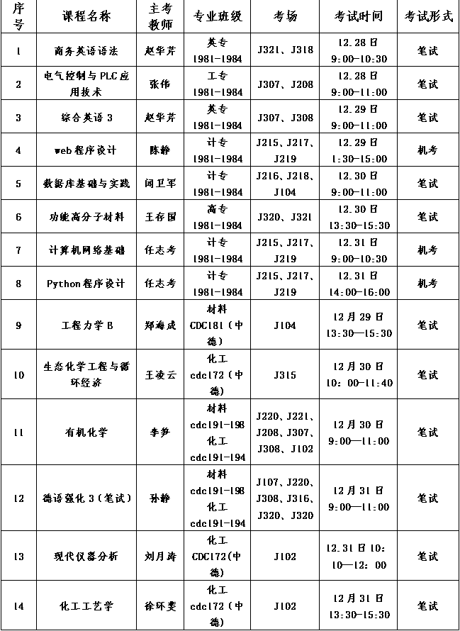 为督促学生更好的准备考试,共建优良考风考纪,现将本学期第十八周各门课程期末考试安排和要求通知如下:
