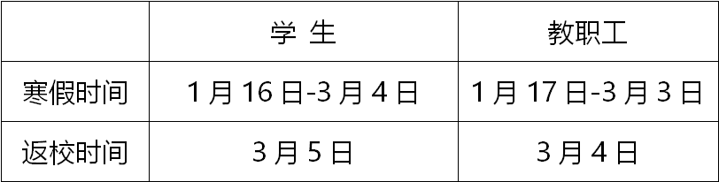 根据学校统一安排,现将2020—2021年中德校区寒假放假事宜通知如下: