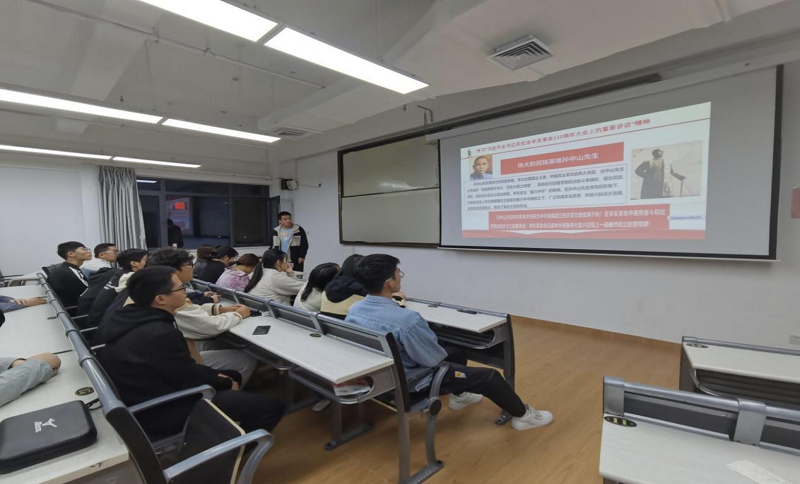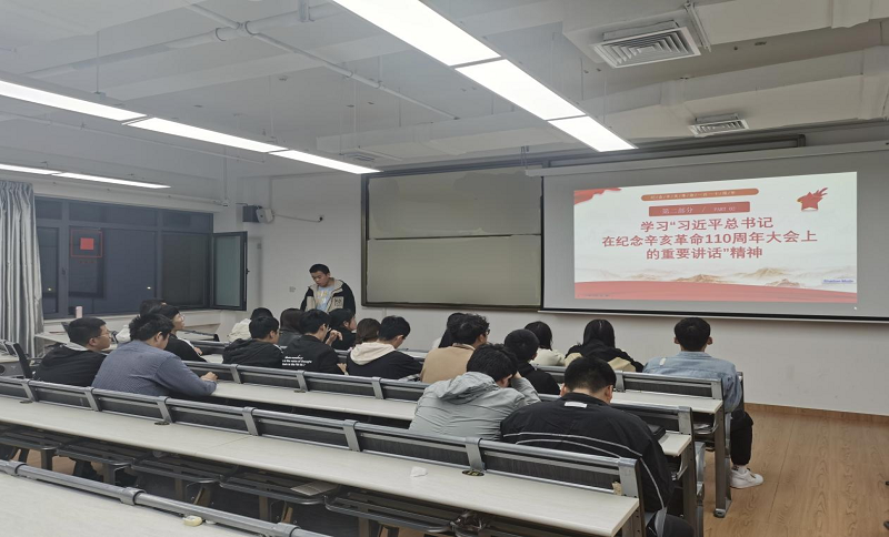 首先,团支部书记李雪松结合文字、图片等史实资料,围绕习近平总书记的重要讲话以及辛亥革命的背景、经过、成果、影响等方面展开了讲解,接着带领大家重点学习了习近平总书记在纪念辛亥革命110周年大会上的重要讲话精神,并结合党史告诉同学们:孙中山先生领导的辛亥革命推翻了中国两千多年的封建统治,拉开了中国近代社会变革的序幕,成为中华民族伟大复兴征程上一座巍然屹立的里程碑。今年是辛亥革命110周年,也是中国共产党成立100周年,中国人民正意气风发向着全面建成社会主义现代化强国的第二个百年奋斗目标迈进。作为团员青年,我们要牢记实现中华民族伟大复兴是全体中华儿女的共同光荣,也是全体中华儿女的共同使命,没有中国共产党,就没有新中国,就没有中华民族伟大复兴!