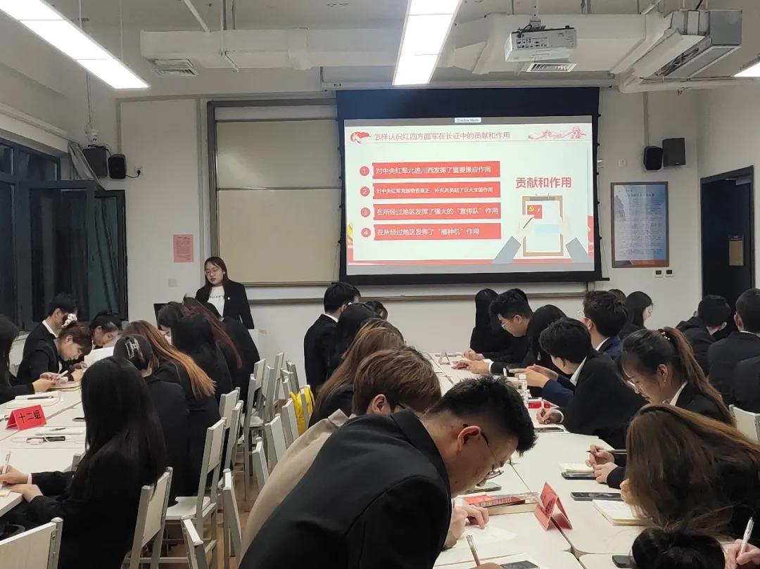 同学们诵读了习近平《论中国共产党历史》中的“讲好中国共产党的故事”、“革命精神是党和国家的宝贵财富”等经典篇章和《中国共产党人的精神谱系》中的“红船精神”、“井冈山精神”等革命精神,通过学习诵读红色经典,引导学生铭记中国共产党的浴血奋战史、艰苦创业史、改革创新史,深刻理解党的初心使命,推进党史学习教育走深走实。