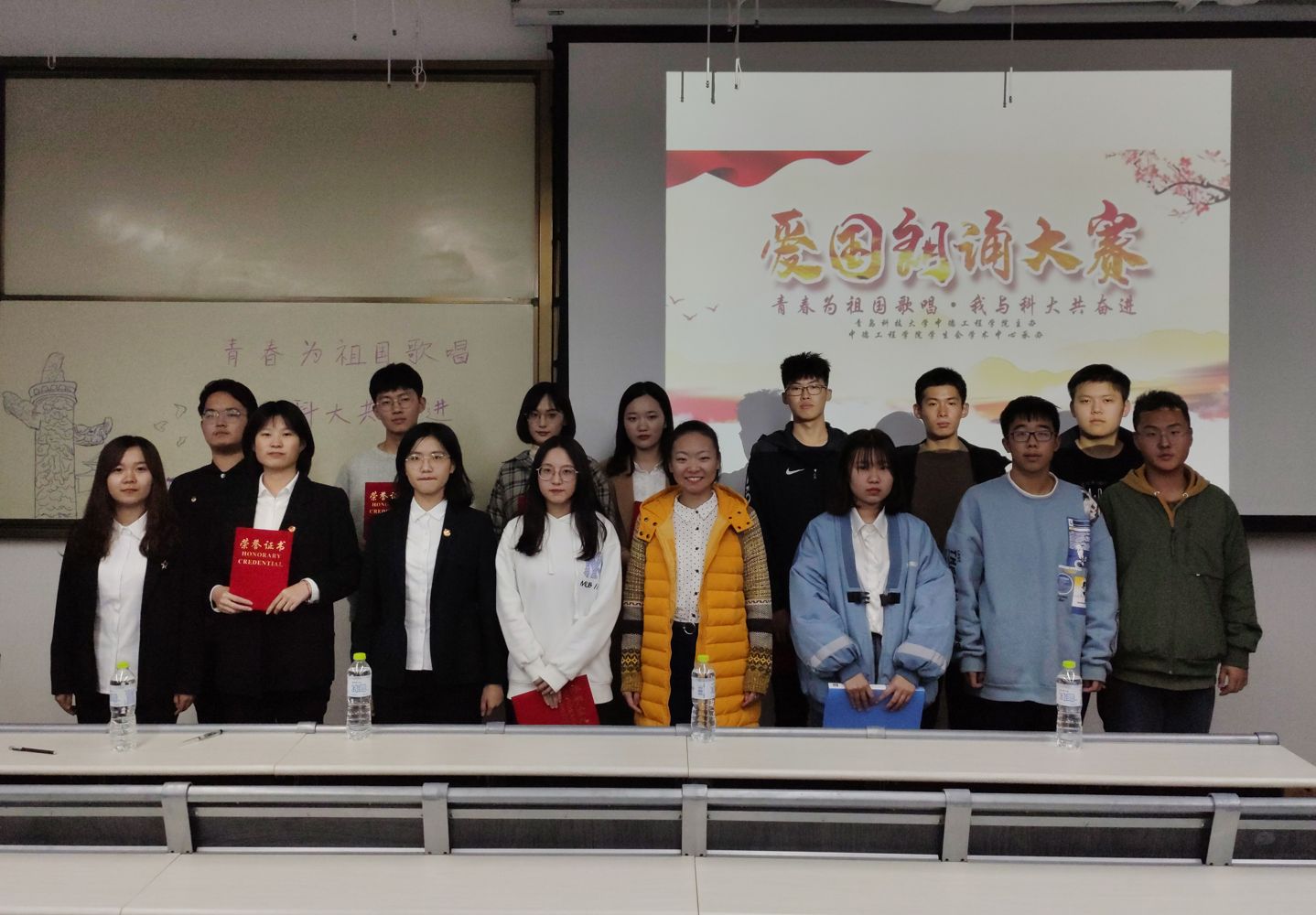 为了丰富校园生活,提高同学们的道德情操和爱国热情,中德工程学院于10月29日16:30在中德校区教室J107举行爱国朗诵大赛。本次比赛由青岛科技大学中德工程学院主办,中德工程学院学生会学术中心承办。出席本次比赛的评委为中德工程学院学生会部分成员,并由王晓宇、孙剑浩担任主持。