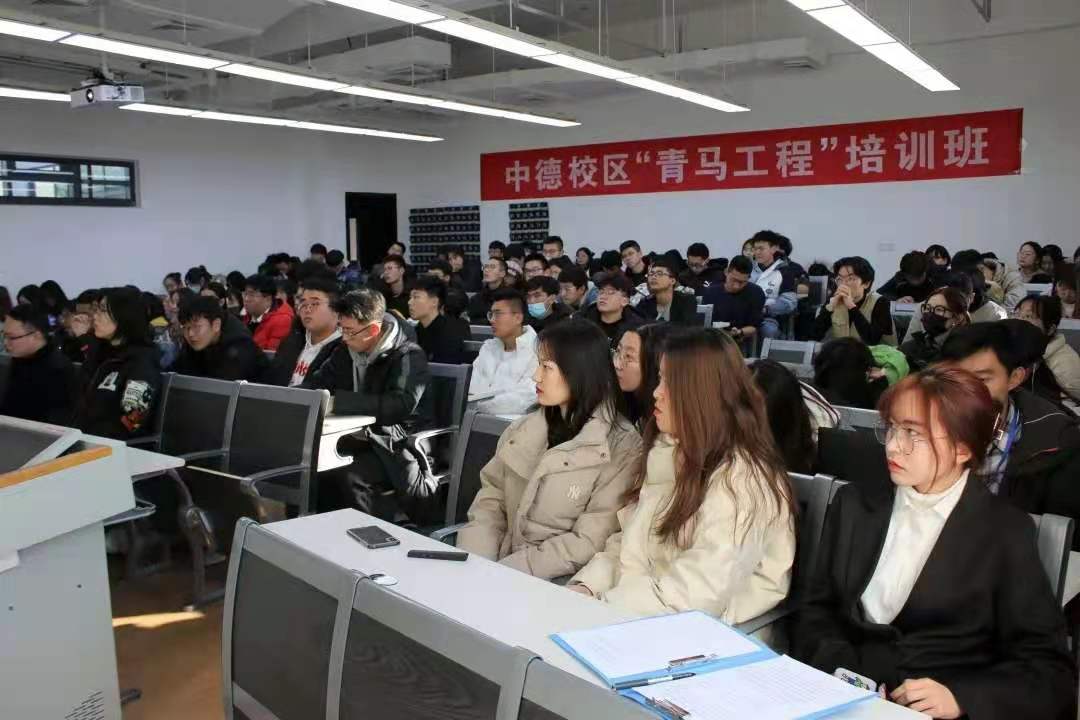 中德校区团委副书记王天乙强调了深入实施“青马工程”的重要意义,要求大家自觉做习近平新时代中国特色社会主义思想的坚定信仰者和忠实实践者。他重点分析了校区学生在政治思想上、生活学习上以及就业等方面的心理特点,从青年学生认知特点、习惯养成、感恩、责任、奋斗等角度和在座的同学们进行了分享和交流。