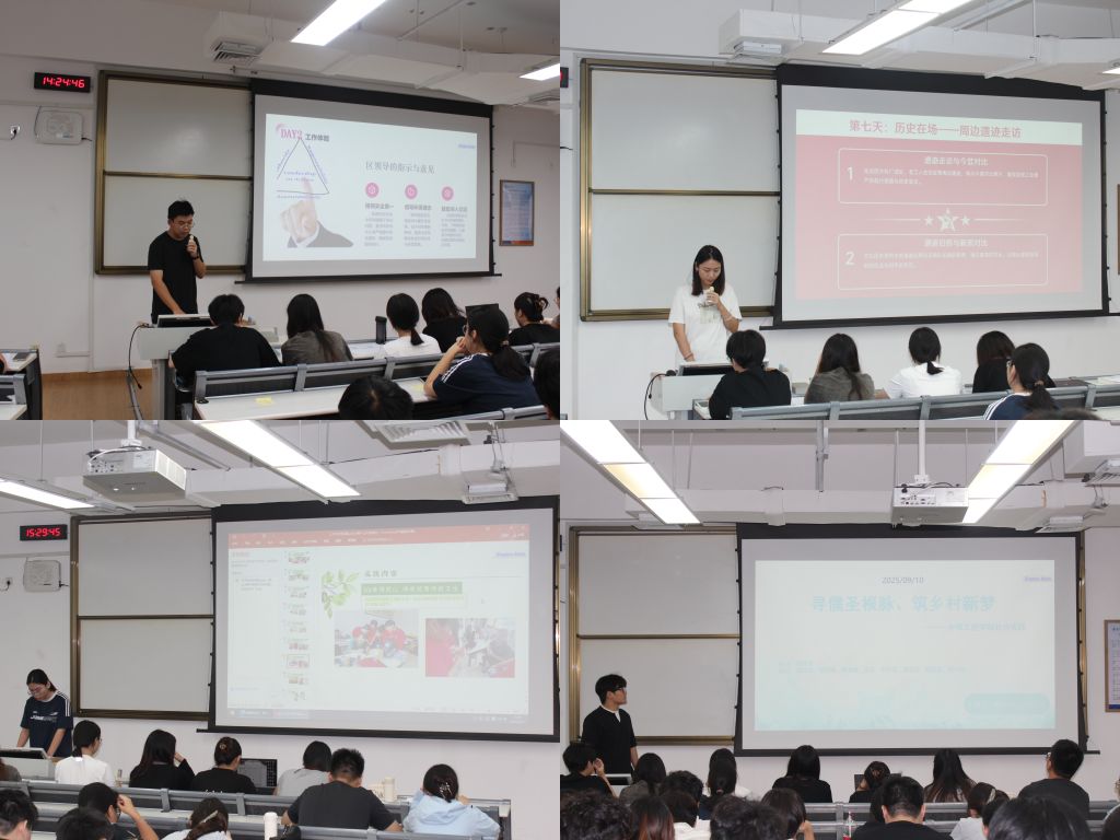 分享会现场,各实践团队代表依次上台,通过PPT、短视频、实践报告等形式,图文并茂、生动详实地展示了各自团队的实践过程、特色做法、调研成果以及深刻感悟。他们或讲述如何克服困难完成调研任务,或分享在服务群众中收获的感动与成长,或展示基于专业所学提出的对策建议。在乡村振兴一线,他们深入田间地头、乡村社区,开展政策宣讲、电商助农、教育帮扶、乡村规划调研,用专业知识为农业农村现代化注入青春动能;在经济社会发展观察中,他们走进高新技术企业、工业园区、博物馆、城市规划馆,感受时代脉搏,理解国家战略,坚定了为实现高质量发展贡献力量的决心;在民族团结进步教育实践中,他们通过国情考察、文化交流、志愿服务等形式,加深了对中华民族共同体的认同,铸牢中华民族共同体意识。此外,还有理论宣讲、生态文明建设等多个主题的实践项目,形成了“百花齐放”的生动局面。一个个鲜活的案例、一串串扎实的数据、一张张真挚的照片,赢得了现场师生的阵阵掌声。