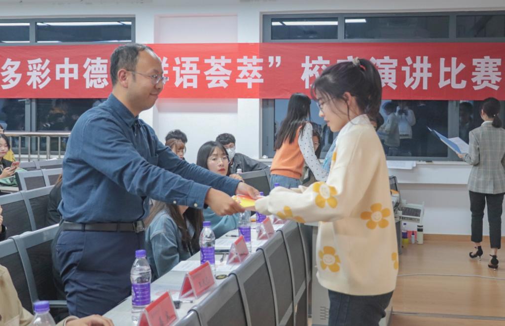 本次演讲比赛,邀请到的评委嘉宾有中德校区团委副书记兼学工办副主任王天乙、优秀学生代表程福星,以及中德校区学生会代表。他们从朗诵激情、语言的流利程度等方面为参赛者评分。