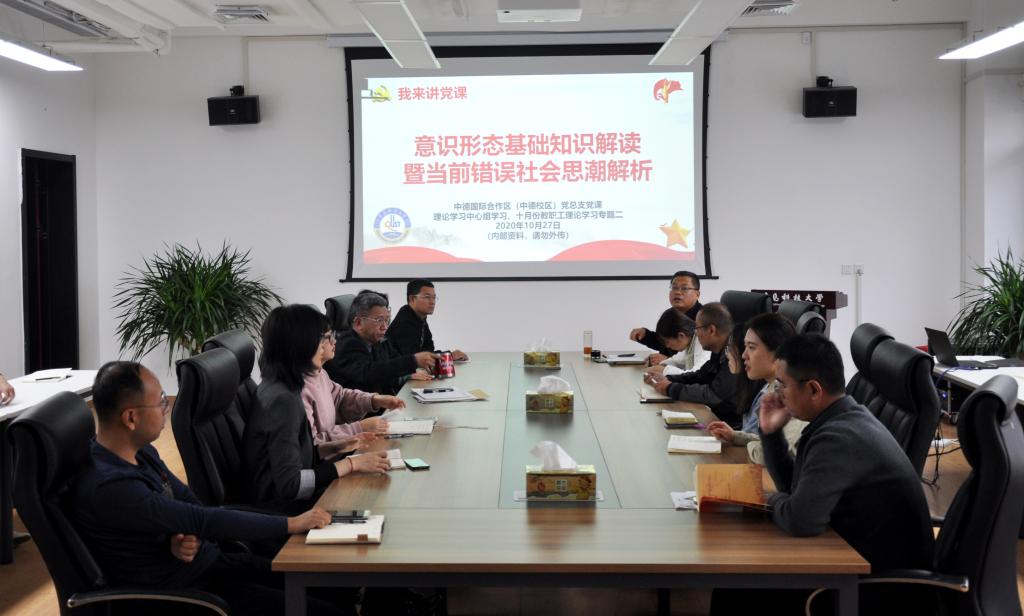 10月27日下午,中德校区开展党课专题学习,党总支书记王永波主持学习活动,校区全体教工党员、学生党员出席会议。