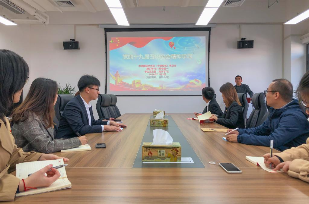 根据中德校区党总支的要求,校区各党支部于周二下午分别在崂山校区和中德校区会议室开展集体学习,传达学习党的十九届五中全会精神。校区各党支部书记及全体党员参加学习。