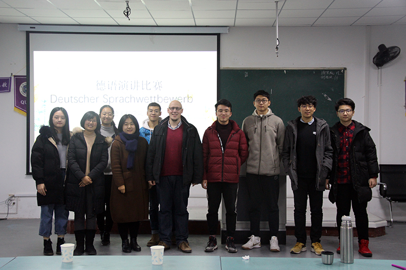为丰富同学们课余活动,提升文化素养,陶冶情操。青岛科技大学中德工程学院于12月18日下午4:00分别在弘毅C402和C403教室举行德语朗诵比赛和德语演讲比赛。本次活动由焦一凡同学和邹喜雨同学主持,17级和18级班主任及学生代表担任嘉宾及评委。