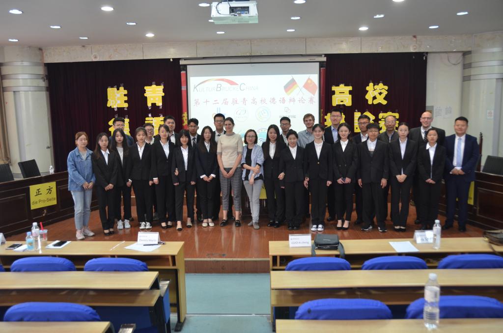 为了领略中德文化魅力,提高德语学习者的德语能力,掌握德语实际应用技巧。5月12日下午2:00,青岛科技大学崂山校区于模拟法庭举行第十二届驻青高校德语辩论赛。本次辩论赛由青岛科技大学中德科技学院主办,出席本次活动的评委和嘉宾有:任铮铮老师、Eva Spalke、郭爱成老师、Dennis Marin、崔婕老师和Marcel Steffens。