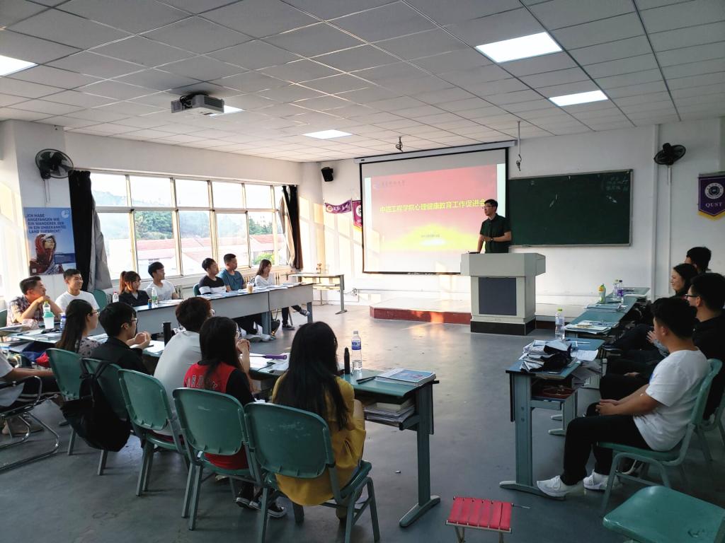 6月14日晚6点,中德工程学院在弘毅楼C403召开考试周心理健康教育促进会和安全稳定工作会。全院主要学生干部、宿舍心音使者参加了会议,会议由分团委付继航主持。
