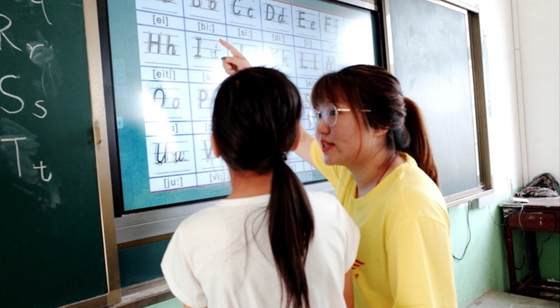 支教团成员根据所准备的的课程安排开始了授课,积极带领孩子们学习英语,培养孩子们学习英语的兴趣,让他们体会到学习英语所带来的快乐。支教团成员进行趣味英语课,课上带领孩子们通过小游戏学习英语,课下并对基础弱的孩子进行辅导。