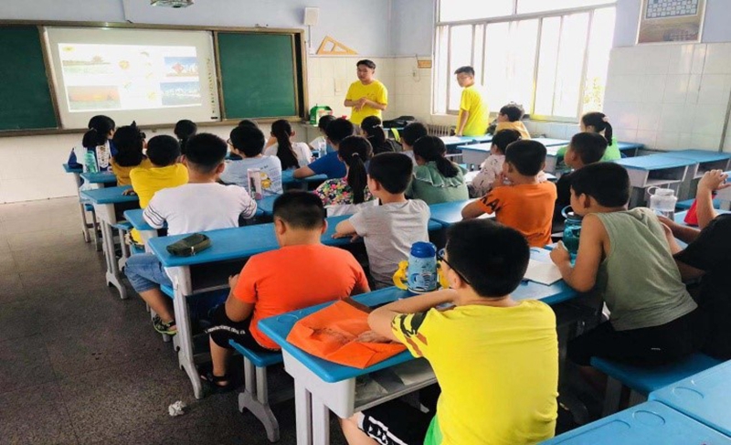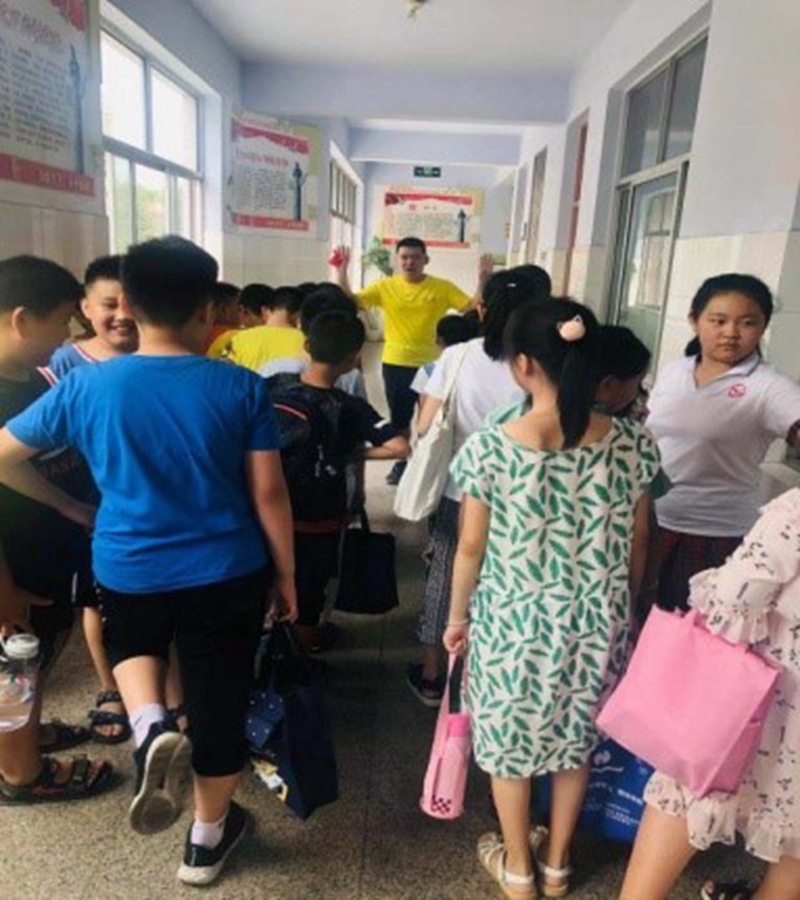 2019年7月19日,中德工程学院“筑梦成长”支教团支教活动的第一天,支教活动的开始时间是8:30,可是成员们早早的就来到了学校门口,共同迎接孩子们的到来。