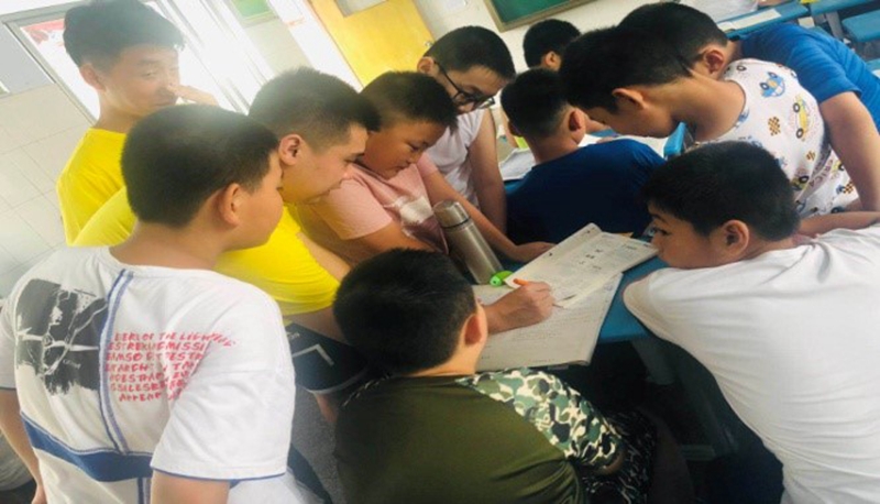 在成员们与孩子们互相交流、了解之后,成员们让孩子拿出自己的暑假作业,并让他们自由学习,在遇到不会的问题时,成员们先是和孩子们一起探讨,随后运用他们所学的知识积极给予解答,孩子们讨论与听讲解的时候都十分认真,体现了他们对知识的渴望。这既培养了孩子们独立思考的习惯与能力,同时在遇到自己解决不了的问题时向外界寻找帮助,并通过团结协作将问题解决。