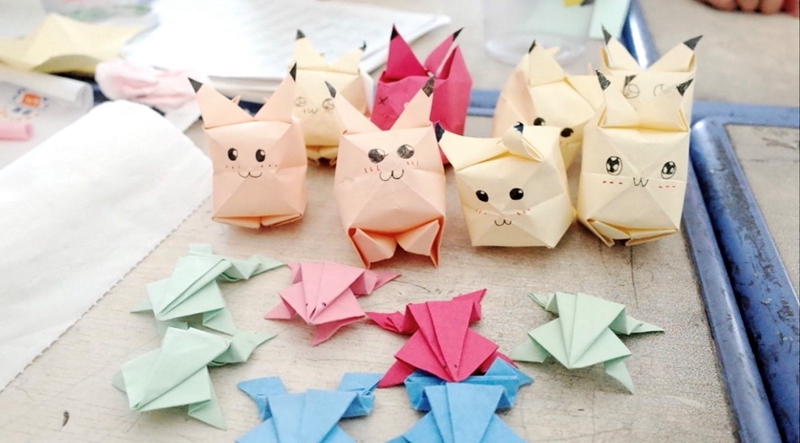 趣味英语课过后,为提高孩子们的动手能力,让孩子们通过自己的双手做出自己的作品,来释放天性、发挥想象力、展现自己的才能和作为一个英语学习间隙的休息放松环节,支教团成员为孩子开展了趣味手工课。由于孩子们对手工折纸接触不多,支教团成员向他们展示了很多孩子们没见过的手工折纸,因此孩子们对此产生了很大的兴趣,也很专注的向支教团成员学习。