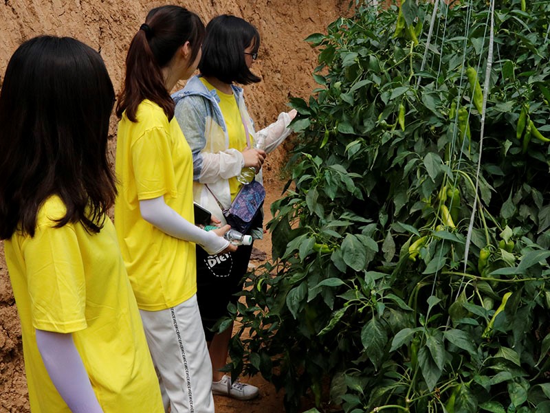 随后,志愿团成员们跟随着书记来到村民的田地里进行实地调研。书记向团队成员介绍,由于季节原因,大部分土地在冬天被闲置,村民生活也难以得到稳定保障。但自从发布响水庄村脱贫政策以来,在政府的大力支持以及村委村民的共同努力下,蔬菜大棚得以迅速建设,土地得以充分利用,不仅保证了村民的生活稳定,也在很大程度上地带动了当地经济的发展。