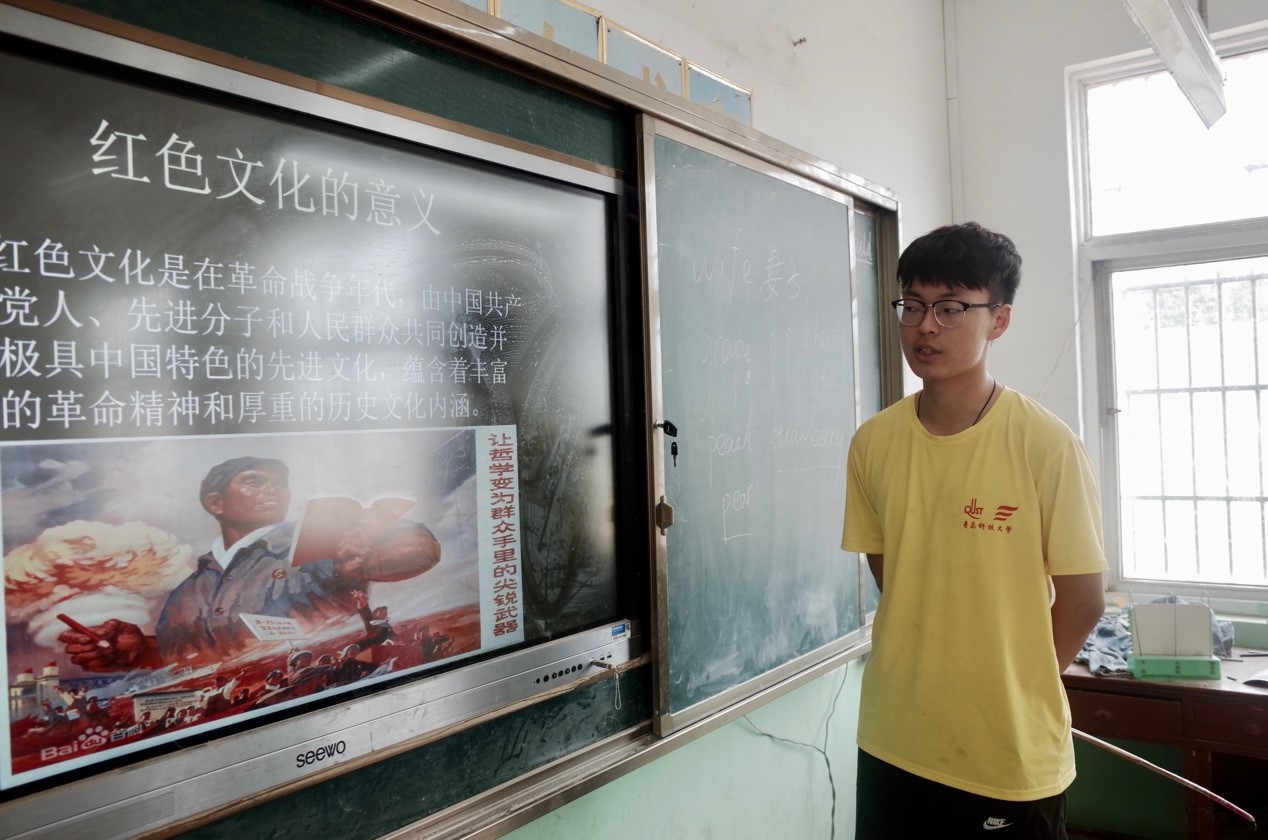 图为支教团成员为孩子开展红色筑梦工程专题课堂的场景