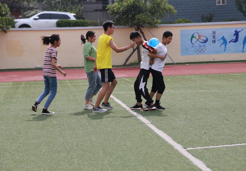 课程结束后,大家一起来到操场,展开了一场精彩的趣味运动会。首先,大家一起做了热身运动。成员们为大家准备了“三人四足”、“气球接力”等游戏,孩子们兴致高昂,笑容在阳光下显得格外灿烂。成员还与孩子们进行了篮球和足球的友谊赛,并把篮球作为奖励赠送给胜利的队伍。