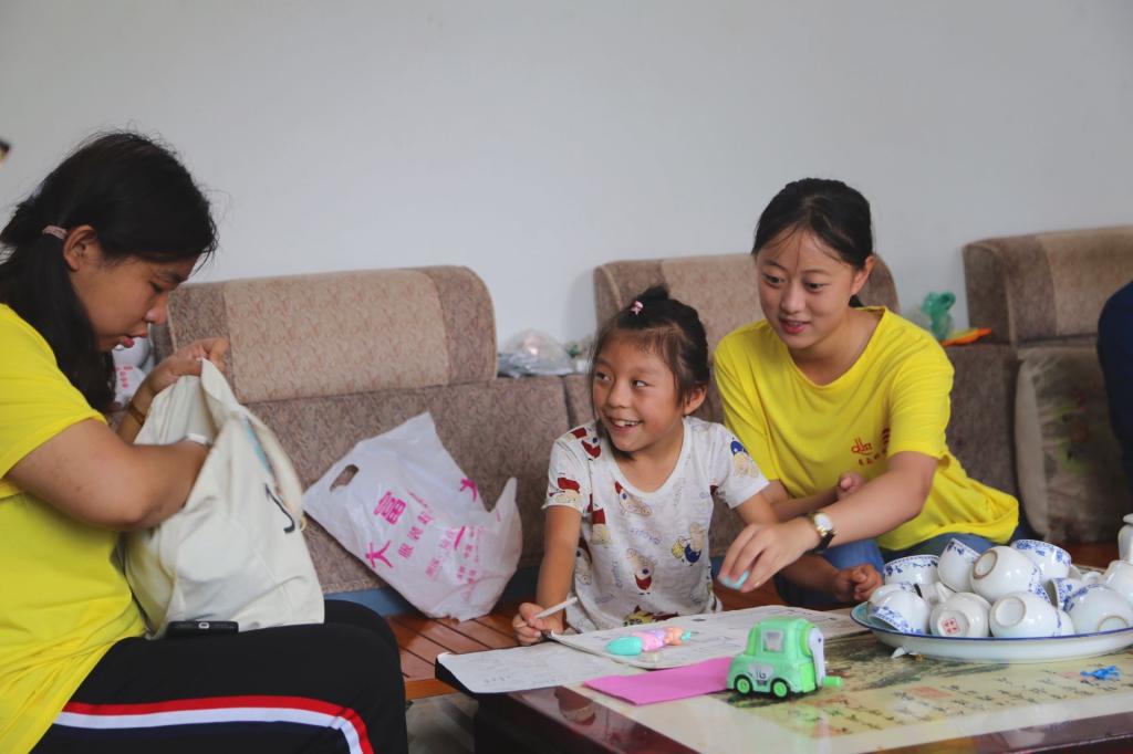 由于一些孩子的家长长期在外工作,孩子们反映在家里学习时遇到问题没法及时解决,一些基础问题没有理解透彻导致拉低课堂效率。团队成员决定分三组到孩子的家中辅导基础文化课,提高孩子暑假作业的完成质量。小学学生刚刚接触基础文化课,学习思维和解题思路还不是特别清晰,一些错误的写字习惯也不利于日后的学习和工作。团队成员帮助孩子巩固基础知识,根据一些课本例题为学生梳理了解题思路。成员们还纠正了孩子的握笔姿势和坐姿习惯,经过反复的提醒,孩子们有了要规范写字姿势的意识,并能提醒自己要正确握笔。