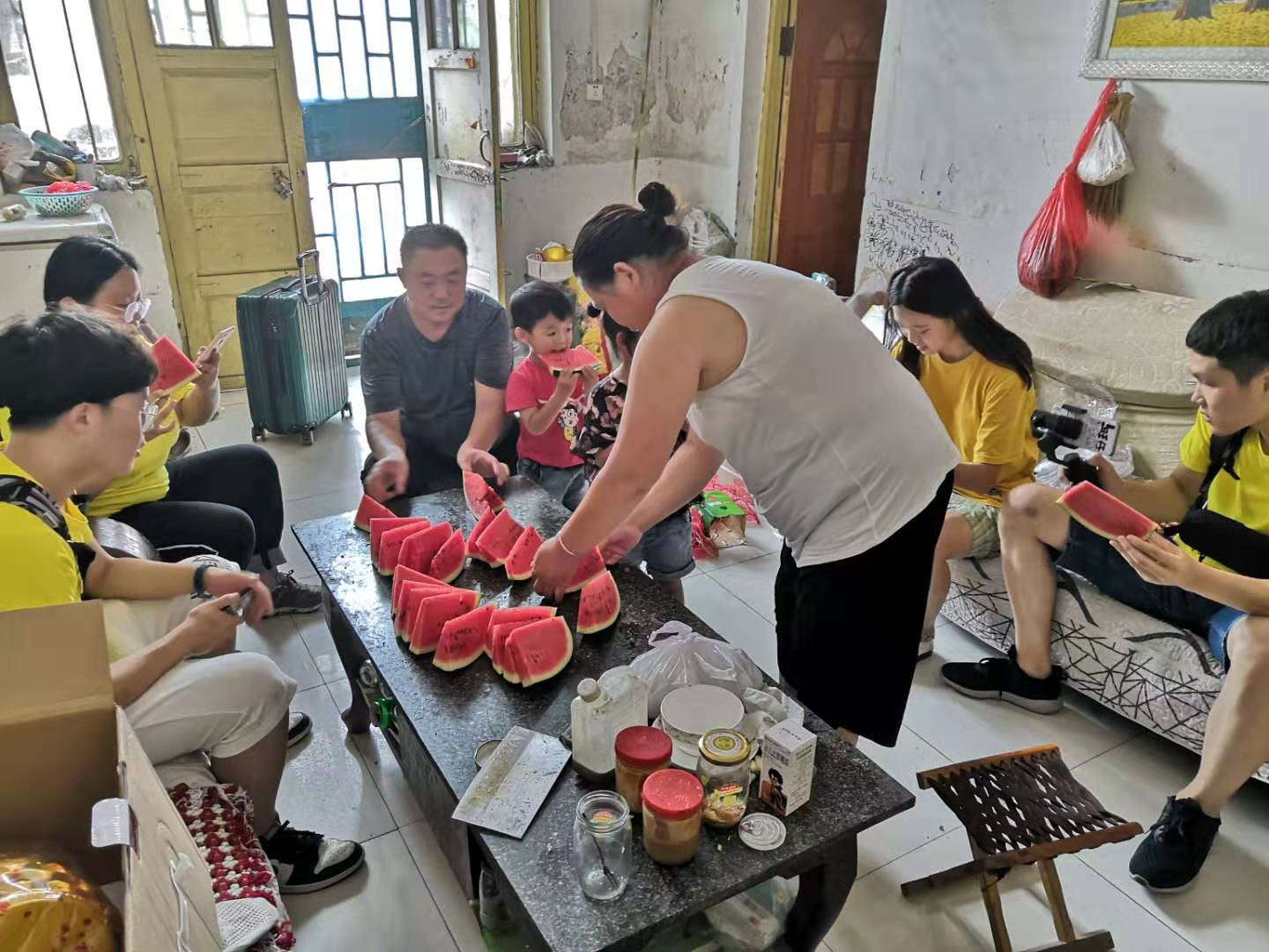 2019年8月8日上午七点“暖涌长流”小组早早便集合准备,在当地村口早餐店吃了早餐,并采访了当地经营多年的早餐店的店主,在店主的邀请下前往店主家中进行采访活动,并就店主的家庭情况,店主的早餐店的经营情况以及村子对店主的帮扶等方面做了一系列简单的问答采访,并送上了“暖涌长流”从青岛带来的特产。店主也非常热情的进行了回答,并在炎炎夏日提供西瓜等水果让我们解暑。