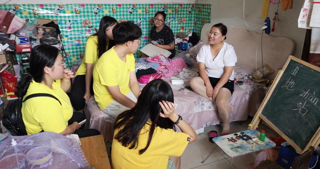 图为“暖涌长流”小组在早餐店主家采访(邵旭珉 摄)