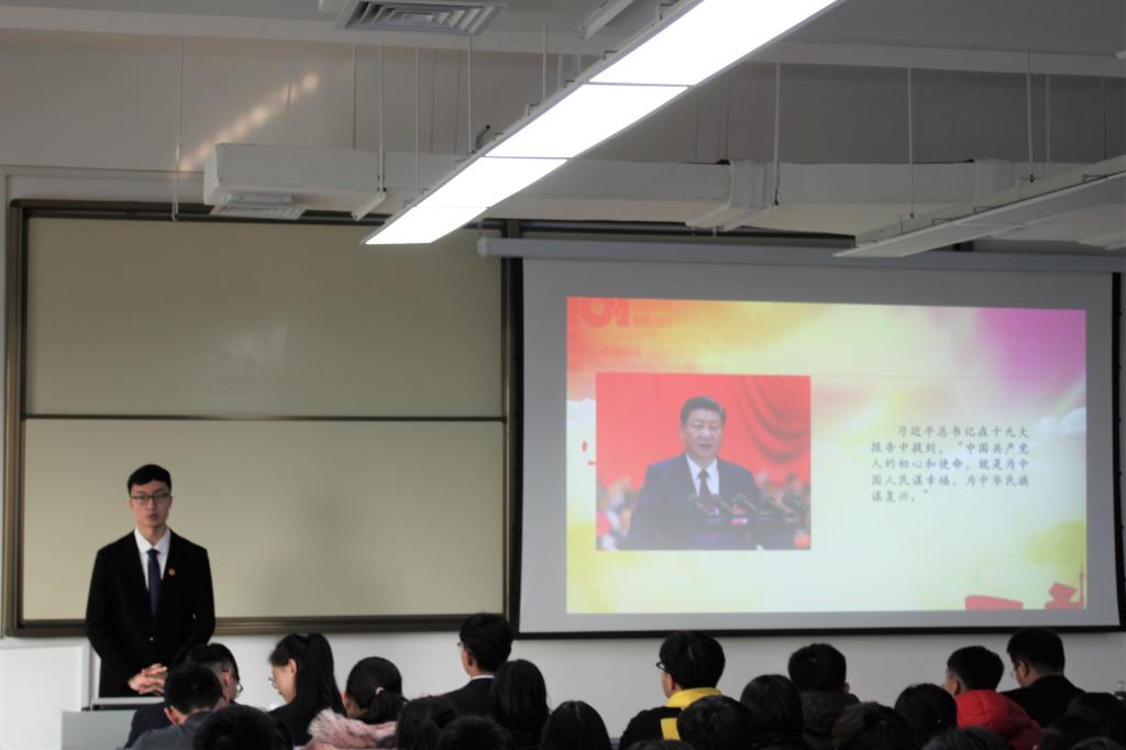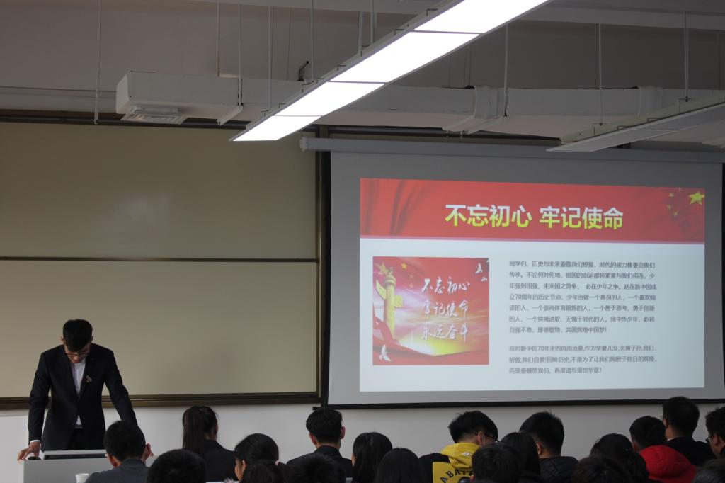 随后,以“奋斗的青春是对祖国最好的献礼”为题目的杨玉泽同学,通过“奉献的青春是最美丽”和“路漫漫其修远兮,吾将上下而求索”,为同学们讲述了他的保研生涯。不忘初心,砥砺前行。