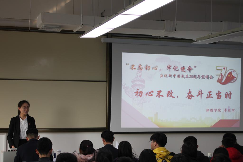 之后是李欣宇同学,她的标题为“初心不改,奋斗正当时”。她带领我们一起回顾历史,用坚定信念,用历史火炬照亮前行;呼吁我们在困难面前奉献自己的一份力量,更应发奋图强成为国家的栋梁之才。
