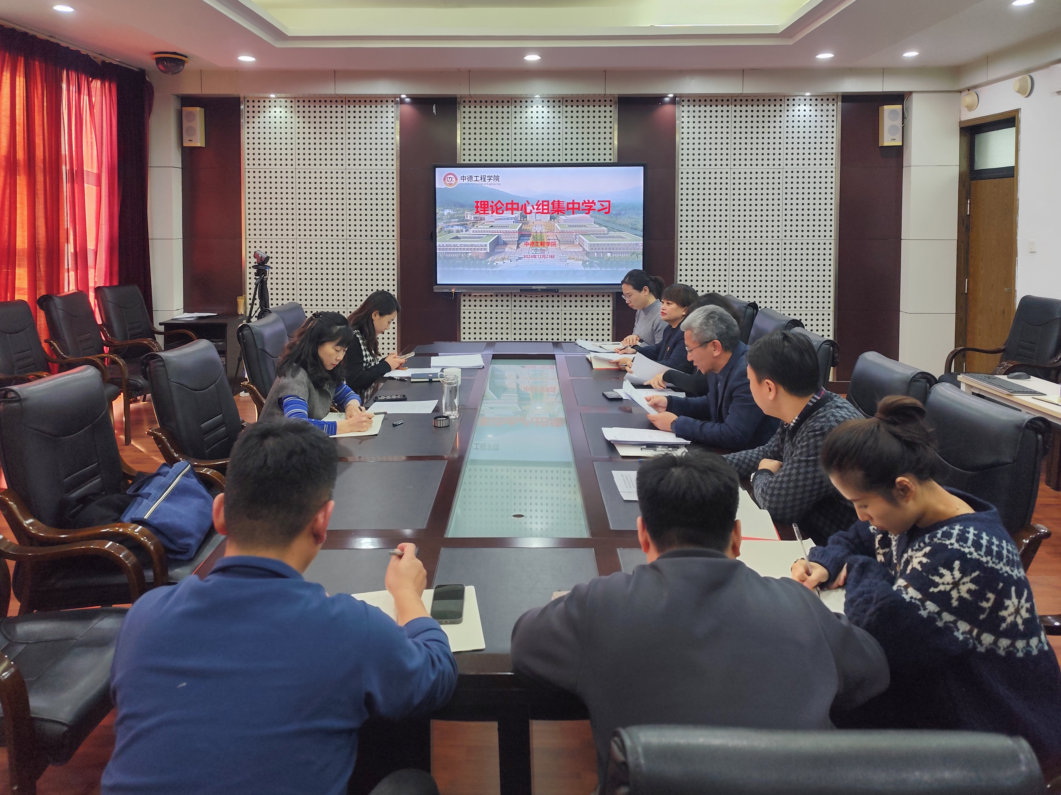 12月23日下午,中德工程学院理论中心组成员在崂山校区中德科技学院B4117会议室开展集中学习。学院党委书记岳学海带领全体中心组成员学习了习近平总书记重要文章《深入推进党的自我革命》。