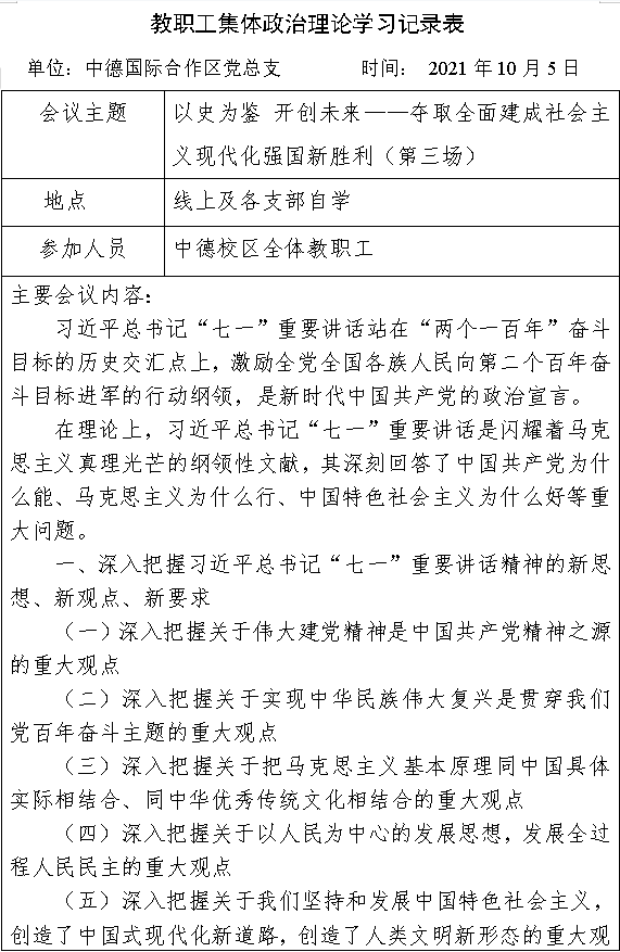 2021年10月第一次教职工集体政治理论学习