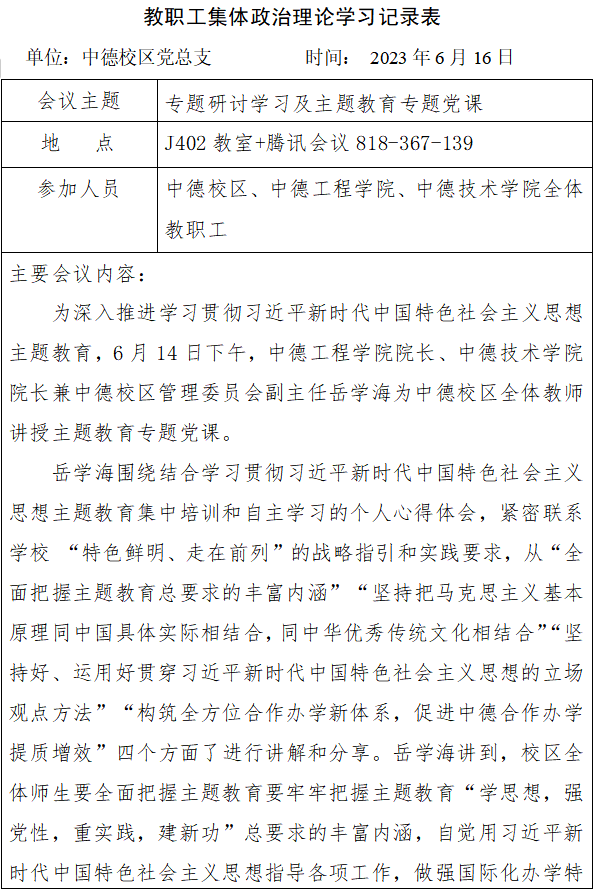 2023年6月第二次教职工集体政治理论学习