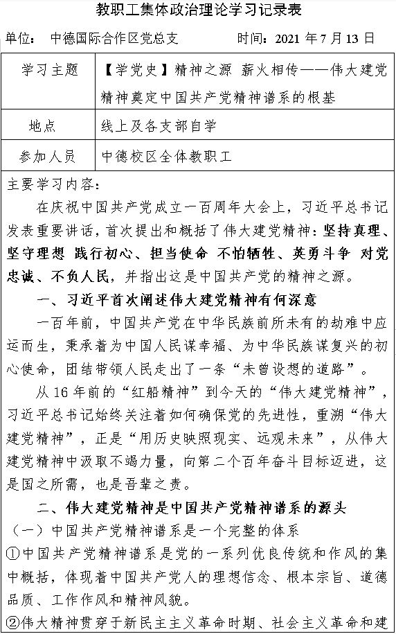 2021年7月第一次教职工集体政治理论学习