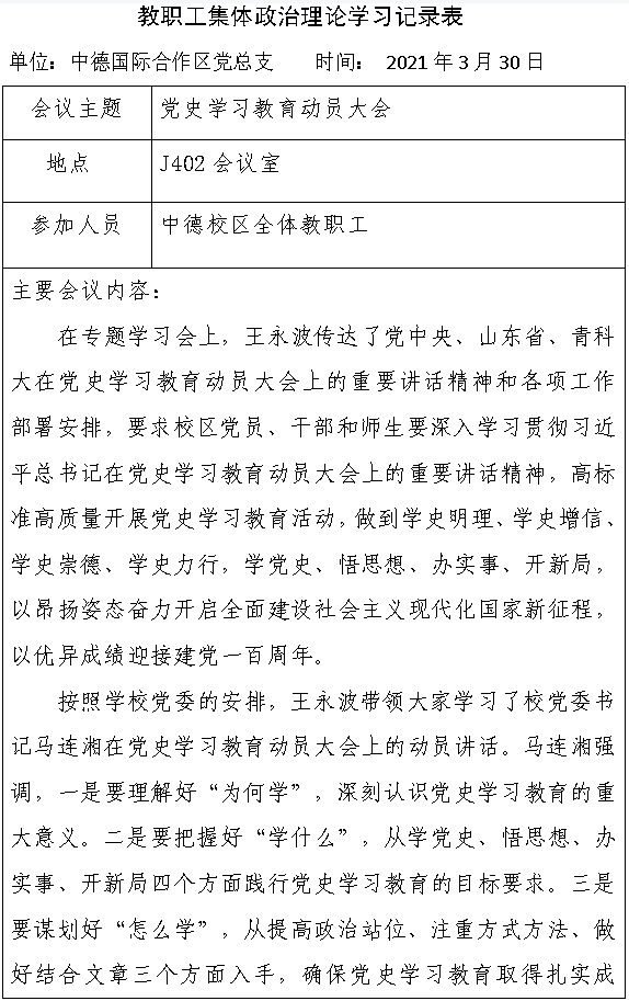 2021年3月第二次教职工集体政治理论学习