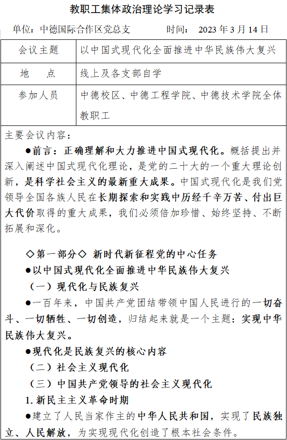 2023年3月第一次教职工集体政治理论学习