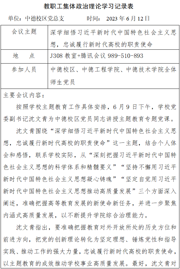 2023年6月第一次教职工集体政治理论学习