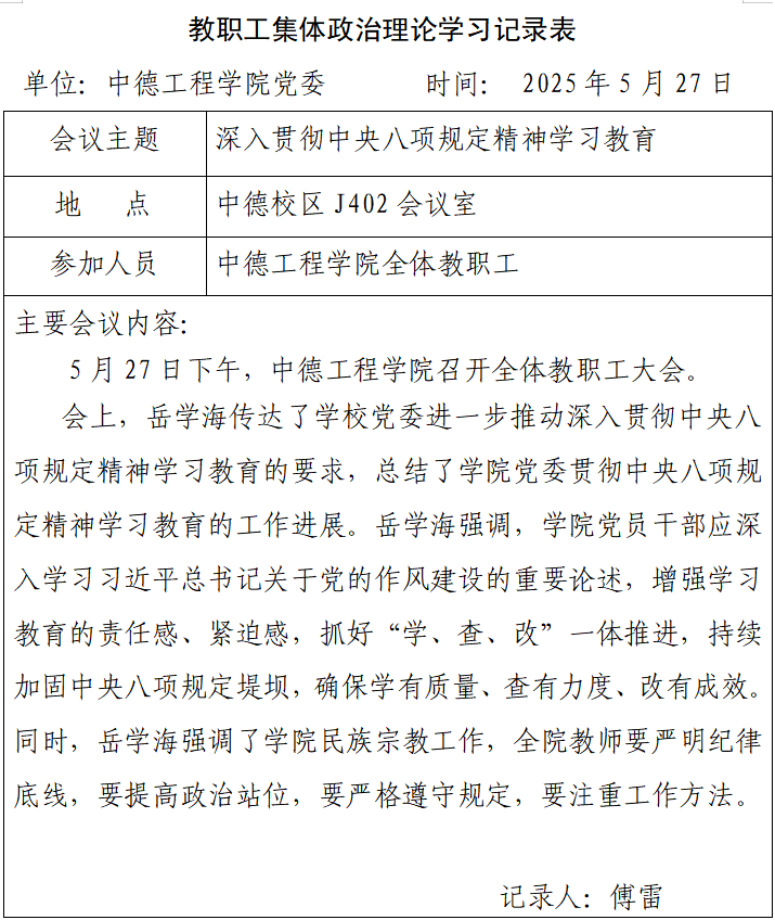 2025年5月第一次教职工集体政治理论学习