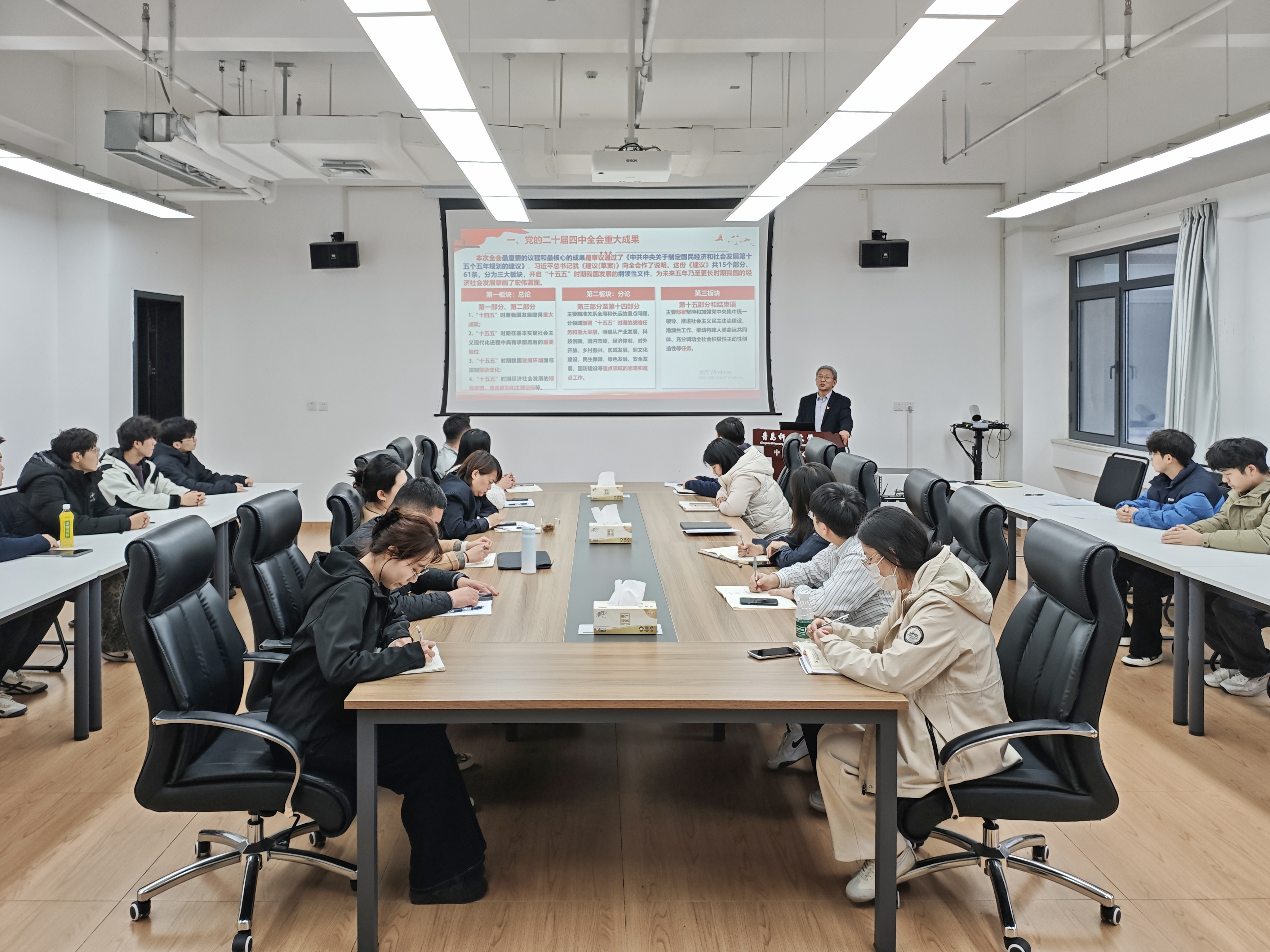 为深入学习贯彻党的二十届四中全会精神,12月23日,学院党委书记岳学海为学院师生讲授“深入学习贯彻党的二十届四中全会精神”专题党课。学院师生党员代表、团员青年代表参加党课学习。