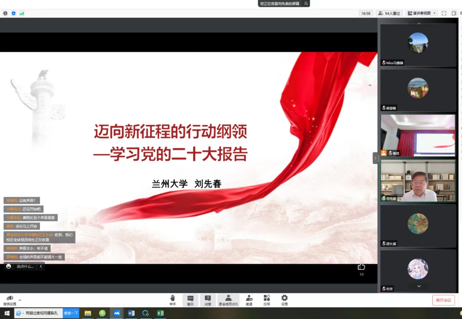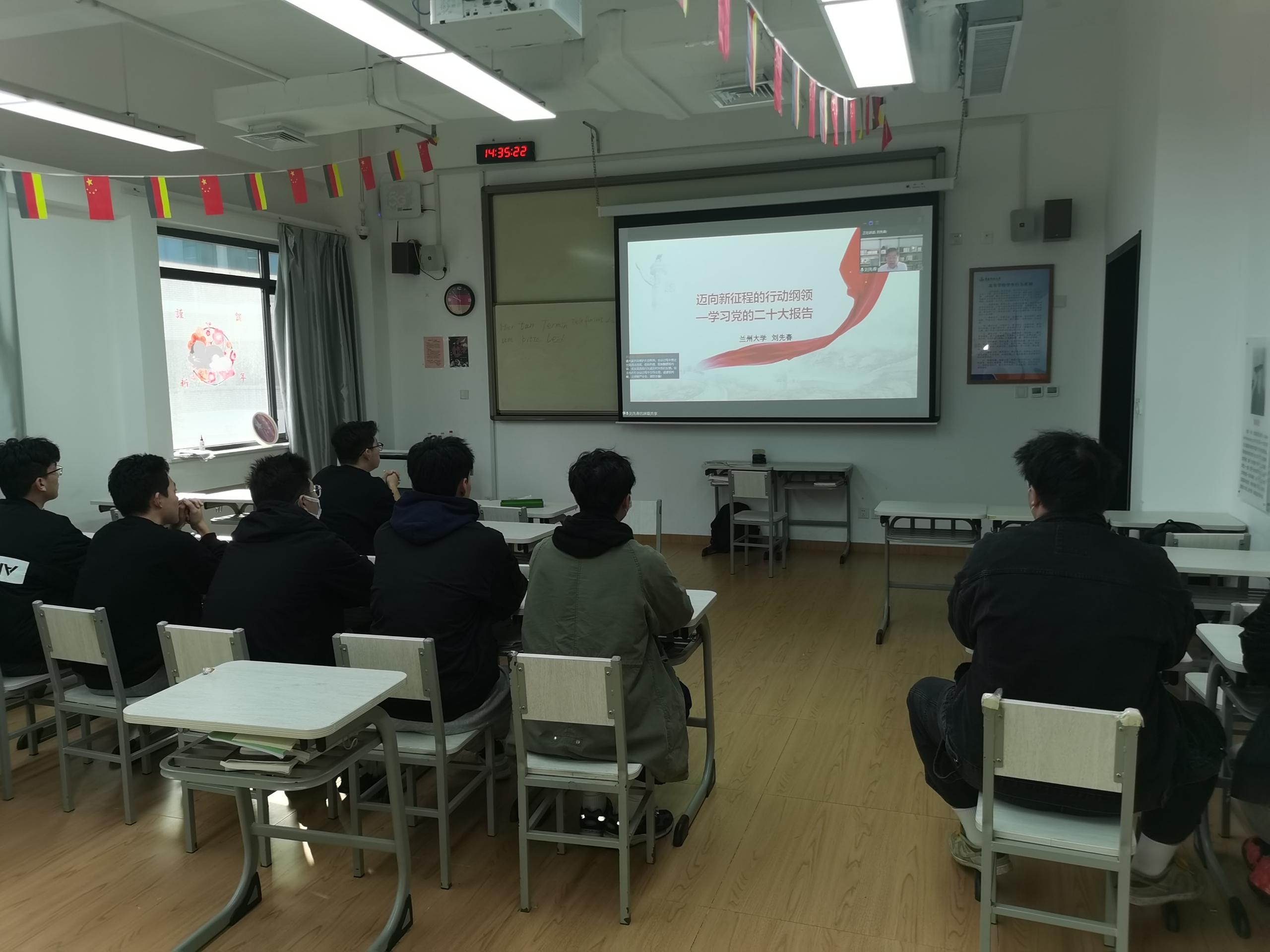 11月8日下午,中德校区集中组织师生收看学习马克思主义学术论坛——党的二十大精神辅导报告线上直播,认真听取中央马克思主义理论研究和建设工程首席专家、青岛科技大学兼职教授刘先春教授以“迈向新征程的行动纲领——学习党的二十大报告”为主题作的专题辅导报告。